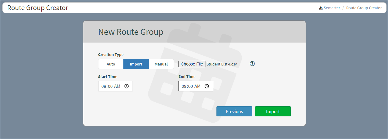 It is possible to save time by importing all the route data into a semester.