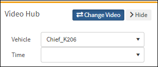 button from the top of the Video Hub accesses a pair of drop-down menus. The first is the Vehicle drop-down that displays all the vehicles that have available videos. The second is the Time drop-down that displays the date and time of the videos pertaining to the specified vehicle. It is possible to only change the date and time for an existing vehicle selection.