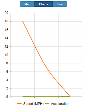 Graph display can be adjusted to depict only Speed (MPH) or only Acceleration, or select none or both, by clicking on the Speed and Acceleration icons at the bottom of the graph.