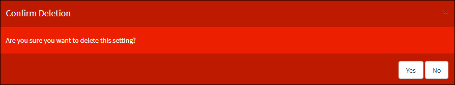 Click Delete to remove the Stop Arm Setting from the system. Any devices assigned this setting will be changed to the default setting. A confirmation message will appear asking to proceed with deleting the setting. Click Yes to delete. Click No to cancel the deletion.